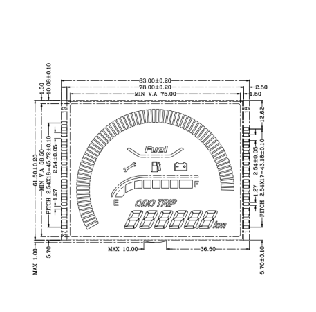 Tùy chỉnh đơn sắc phân khúc kỹ thuật số LCD hiển thị cho đồng hồ tốc độ
